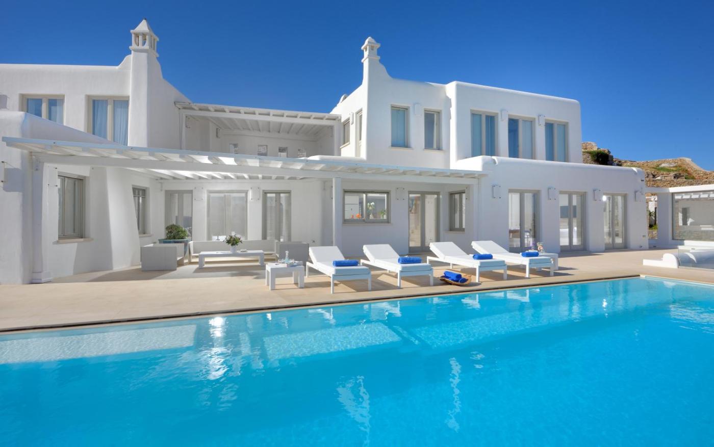 Set in Ornos, Villa Divine - 10 bedrooms in Ornos, Tennis court offers accommodation with private pool, free WiFi and free private parking for guests who drive. 2.9 km from Mykonos Windmills and 3 km from Little Venice, the property features a terrace and a bar. The property is non-smoking and is situated 60 metres from Ornos.